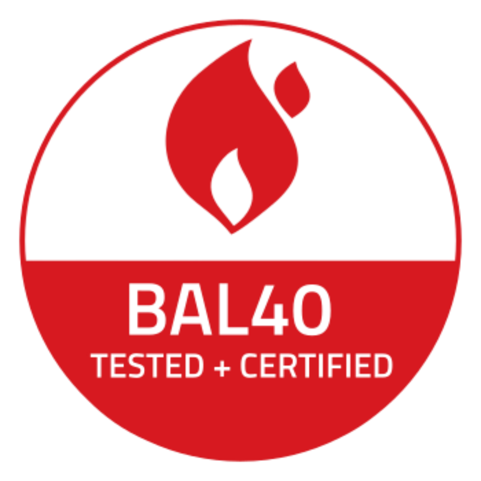 aluplast BAL40 certified window and door products are identifiable with the above logo. This logo confirms that the system has been developed, engineered, tested and manufactured as suitable for use in a BAL40 zone.
